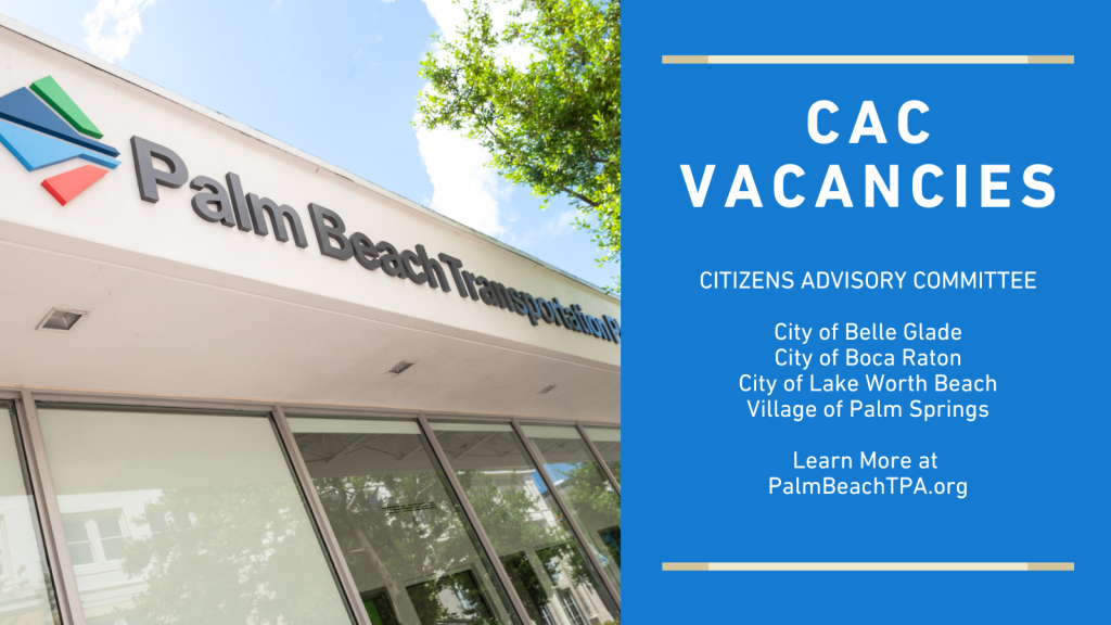 The Citizens Advisory Committee (CAC) provides a citizens’ review and makes recommendations to the MPO Governing Board regarding transportation plans, programs, studies, and other appropriate documents and regional transportation issues. Members are appointed by the Governing Board based on special designations required by Section 339.175(8)1., Florida Statutes, and other categories determined by the Governing Board.