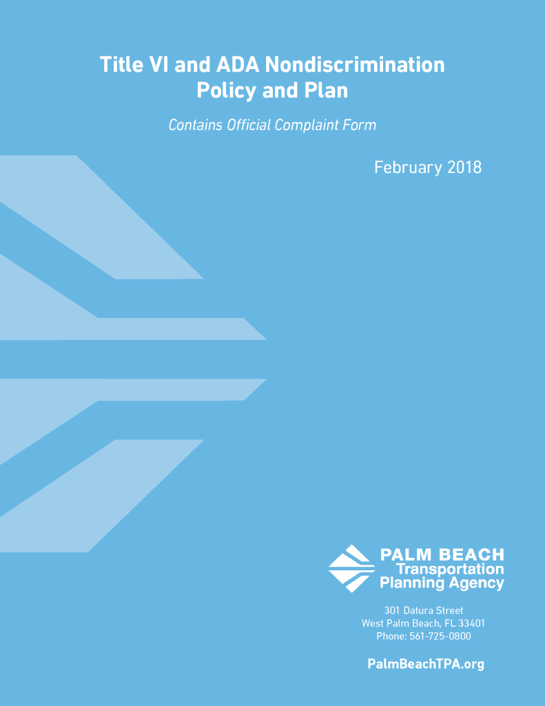 The Palm Beach MPO has designated a Title VI & ADA Officer who is responsible for addressing complaints of discrimination in the provision of programs, services, benefits or activities. Complaints may be submitted in writing using the Complaint Form.